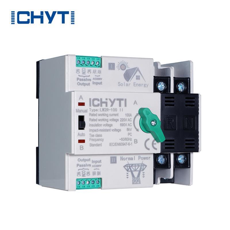 Китайський заводський перемикач ICHYTI 100a at Зроблено в Китаї – це пристрій, який використовується в системах аварійного електроживлення, підходить для номінальної напруги, що не перевищує 1000 В змінного струму або 1500 В постійного струму. Його основною функцією є переривання живлення навантаження під час процесу перетворення електроенергії.