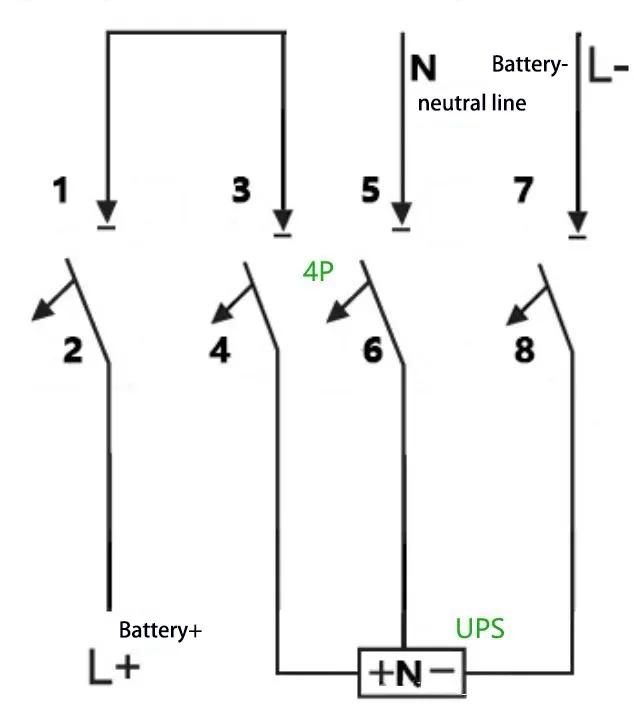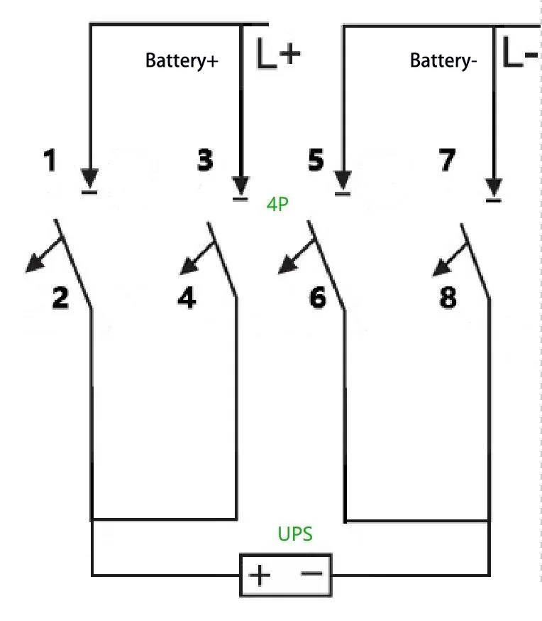 У конфігурації систем живлення ДБЖ автоматичні вимикачі постійного струму виконують подвійну функцію ізоляції та захисту від перевантаження по струму для ланцюгів батареї. Різні типи джерел живлення ДБЖ відповідають різним номінальним напругам і струмам батареї, що вимагає адаптації автоматичних вимикачів постійного струму з різною кількістю полюсів. У цій статті детально описано різні методи підключення автоматичних вимикачів постійного струму 1P/2P/3P/4P, які застосовуються в системах ДБЖ.