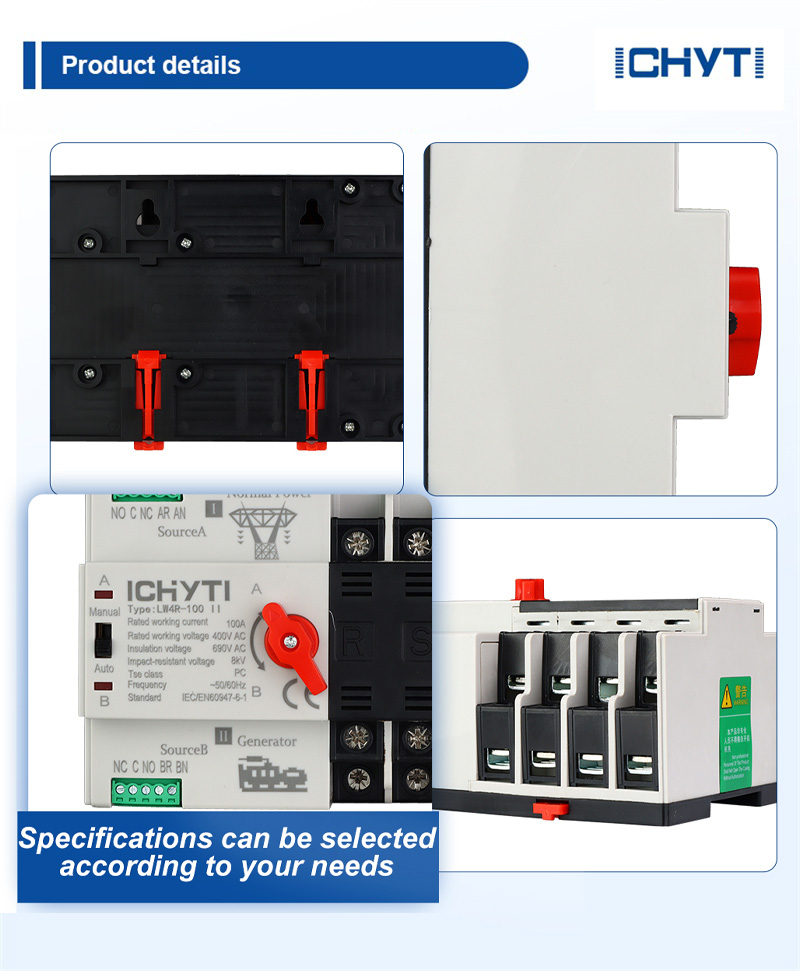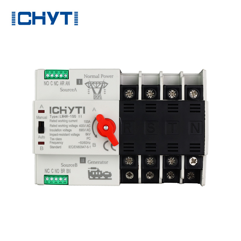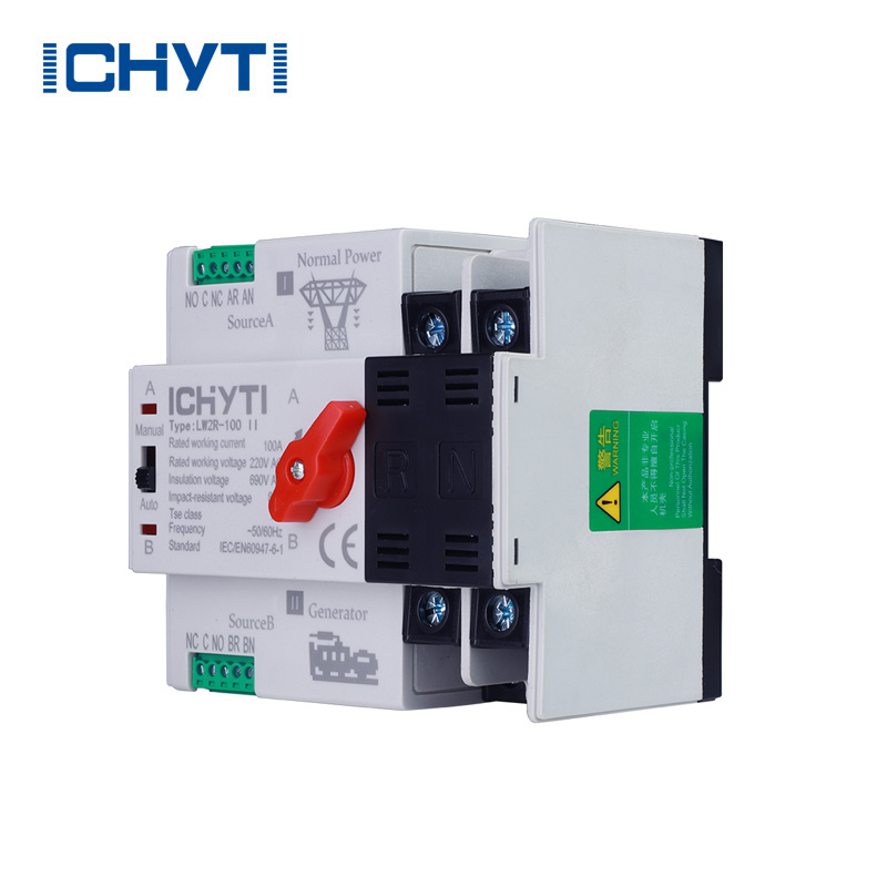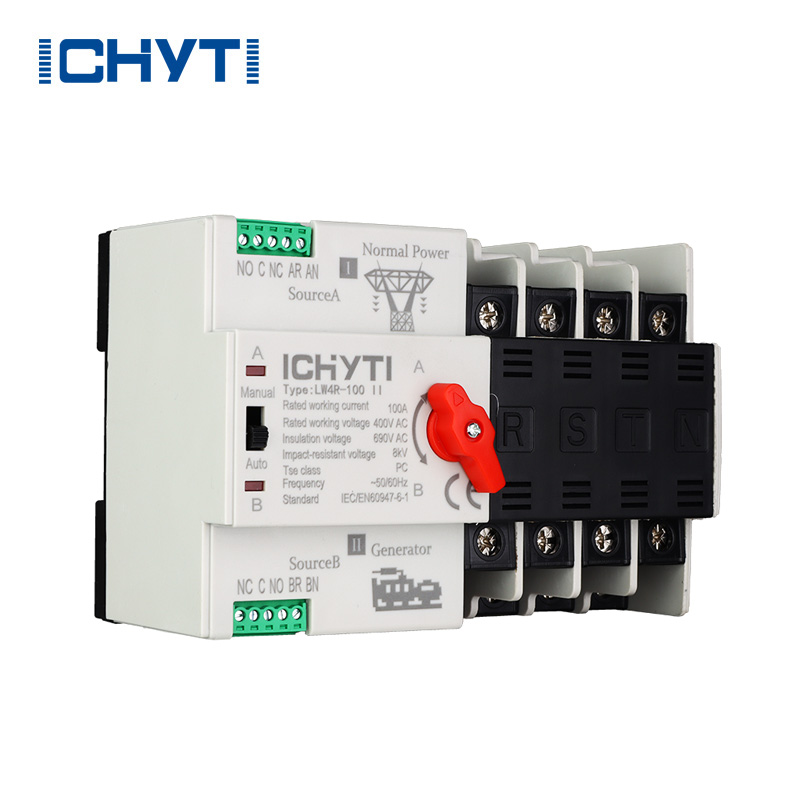 Однофазний автоматичний перемикач китайського заводу ICHYTI оптом Купуйте зі знижкою, має три функції перемикання в системі електропостачання трифазної чотирипровідної електромережі, включаючи автоматичне перемикання резервного джерела живлення, резервного джерела живлення, а також електромережі та генератора. Він може визначати ефективне значення трифазної напруги та ефективне значення фазної напруги та фазу двох джерел живлення в режимі реального часу та автоматично переключатися з ненормальних джерел живлення на нормальні джерела живлення у разі перенапруги, зниженої напруги або втрати фази в будь-якій фазі.